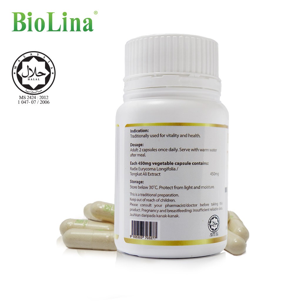 Ingredient : Each vegetable capsule contains Radix Eurycoma Longifolia / Tongkat Ali Extract 450mg